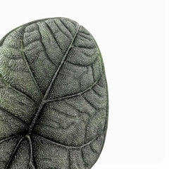 Alocasia melo wird vor allem wegen ihrer Textur geschätzt, mit kompakten blaugrünen Blättern, die so dick, gerippt und stark gechannelt sind, dass sie eher wie geschnitzter Stein als wie Blattwerk wirken. Die Pflanze bleibt im Innenraum meist bei etwa 30–50 cm, doch jedes Blatt trägt genug Substanz, um sie dichter erscheinen zu lassen als viele größere Alocasien.