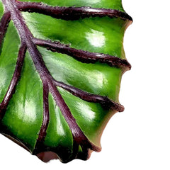 Colocasia 'Pharaoh’s Mask' wirkt fast künstlich gebaut: hellgrüne Blätter werden von massiv erhabenen violett-schwarzen Adern nach außen gedrückt, sodass die ganze Oberfläche geformt statt flach erscheint. Gerade diese starke Rippenstruktur trennt sie deutlich von gewöhnlichen Elefantenohr-Pflanzen und verleiht ihr mit mehreren Blättern eine ausgeprägte räumliche Präsenz. Selbst innerhalb dramatischer Colocasia-Sorten wirkt sie architektonischer und fast monumental. Damit diese Form überzeugend bleibt, braucht Colocasia 'Pharaoh’s Mask' helles gefiltertes Licht, humusreiches, aber luftiges und feuchtigkeitsliebendes Substrat, viel Wärme, regelmäßige Düngung und genug Luftfeuchtigkeit für sauberen Austrieb – dann wird sie zu einer großen Blickfangpflanze, die kaum Konkurrenz um sich herum braucht.