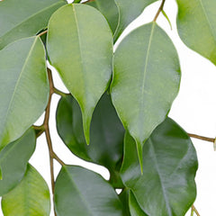 Ficus benjamina 'Danielle', im Deutschen auch Birkenfeige oder Benjamini, ist ein kompakter, dunkelgrüner Kultivar der beliebten, immergrünen Zimmerpflanze. Die kleineren, stark glänzenden Blätter stehen leicht aufrecht und bilden eine dichte, gleichmäßige Krone. Ob als Hochstamm, geflochtener Stamm, mehrstämmiger Busch oder Bonsai – 'Danielle' passt in klassische wie moderne Einrichtungen und gilt als pflegeleichter Ficus für Wohnräume und als klassische Büropflanze.