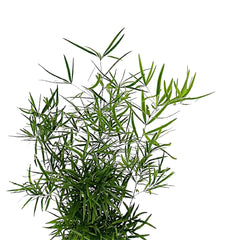 Asparagus falcatus is not a soft filler but a real structural climber, sending out long stems lined with glossy sickle-shaped cladodes that can cover a support quickly once established. It feels tougher and more architectural than most indoor asparagus types, which makes it useful for screens, frames, or conservatory-style displays where you want height and density.