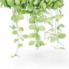 Dischidia sp. Geri D22 'Apple Leaf' is an unidentified cultivated Dischidia with short internodes and glossy rounded leaves that resemble miniature apples in shape and finish. Unlike many looser trailing species, it often starts with a more upright habit before the stems begin to arch and hang, giving the plant a bushier, tidier look in smaller pots or mounted displays. It prefers bright indirect light, warmth between 18–28 °C, and a very airy epiphytic mix made from bark, coco chips, and perlite, while watering should come only after the surface has dried slightly.