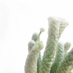 Avonia papyracea is a truly unusual succulent from the arid regions of southern Africa. What looks like a clump of tiny silver-scaled stems is actually a slow-growing plant with a swollen underground caudex and delicate green photosynthetic stems wrapped in papery white sheaths. These scales reflect sunlight and protect the plant from harsh exposure, giving it a shimmering, alien-like appearance. Tiny white flowers appear occasionally at the stem tips but the real beauty lies in its form and texture.