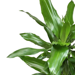 Dracaena fragrans 'Janet Lind' is a refined green cultivar with slightly narrower, more arching leaves than some classic corn-plant forms, giving the rosettes a softer outline on top of the cane. Indoors it usually reaches about 1.2–1.5 m with slow predictable growth, making it useful where a neat upright plant is wanted without heavy variegation.
