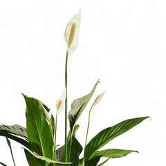 Spathiphyllum 'Maximo Cupido' is the big, architectural member of the Cupido line, with tall stems and wide, glossy leaves that can anchor a room. When in bloom, its large white spathes rise just above the foliage, giving a clean, layered look.